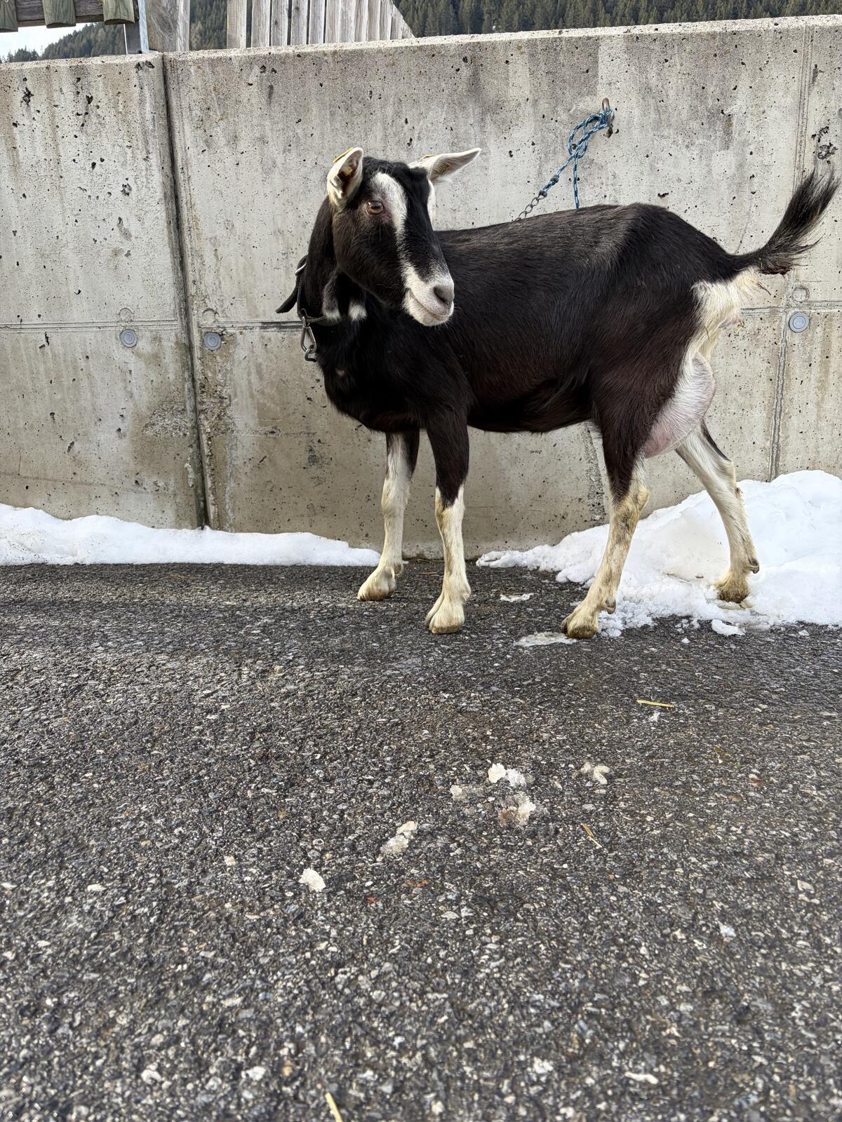 Die erste Ziege ist 2 Jahre alt, Zweitmelker. Die zweite Ziege ist fast 4 Jahre alt und ist Bockmutter.