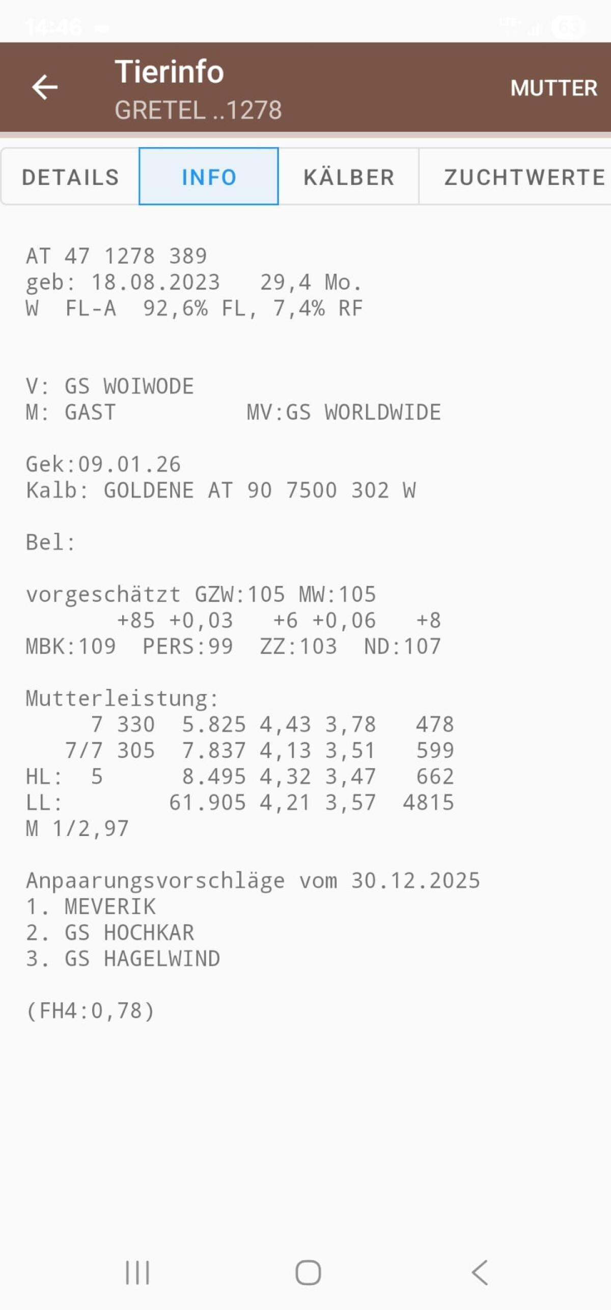 Verkaufe Erstlingskuh Fleckvieh, Bio, in Milch, Einsatzleistung 24 l, gute Melkbarkeit 2,45, brav beim Melken, gesundes Tier. Vater: GS Woiwode, gute Mutterleistung.