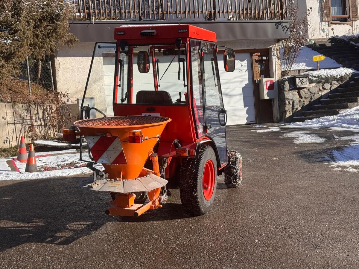 Gut gepflegt, wenig benutzt. Inkl. Schneeschild hydr. schwenkbar, Salz-/Splittstreuer und Kehrbesen (Frontanbau). Ketten vorne und hinten. Blitzwarnleuchten und Arbeitsscheinwerfer LED.