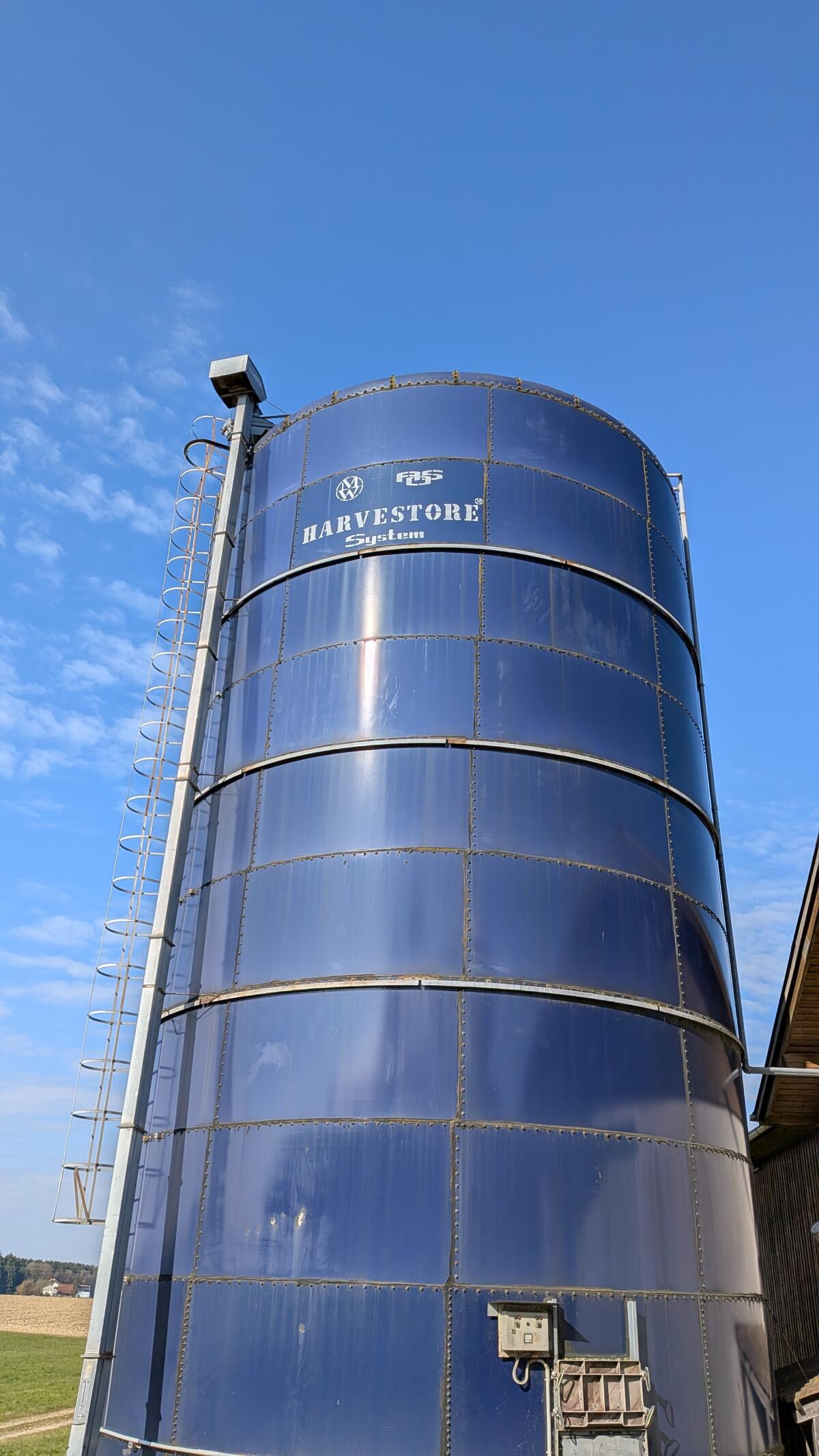 Ich biete ein gebrauchtes Harvestore-Futtersilo zum Selbstabbau an. Das Silo hat eine Gesamthöhe von ca. 14 m und einen Dm. von etwa 3,35 m. Der Zustand ist altersbedingt gebraucht, technisch jedoch in Ordnung. Die Stahlplatten sind emailliert. Zum Angebot gehören ein Ausgleichsilo sowie ein Elevator zur Beförderung des Futters. Das gesamte System funktioniert einwandfrei und ist besonders gut für die Ganzkornlagerung geeignet. Abbau und Abtransport erfolgen durch den Käufer, eine Besichtigung ist nach Absprache möglich. Preis nach Vereinbarung.