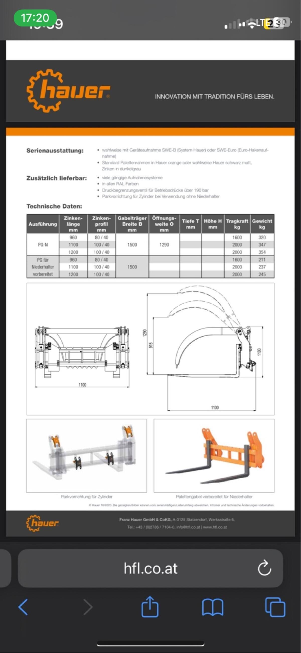 Neuwertige Hauer Palettenzange mit Niederhalter, fast nie verwendet.