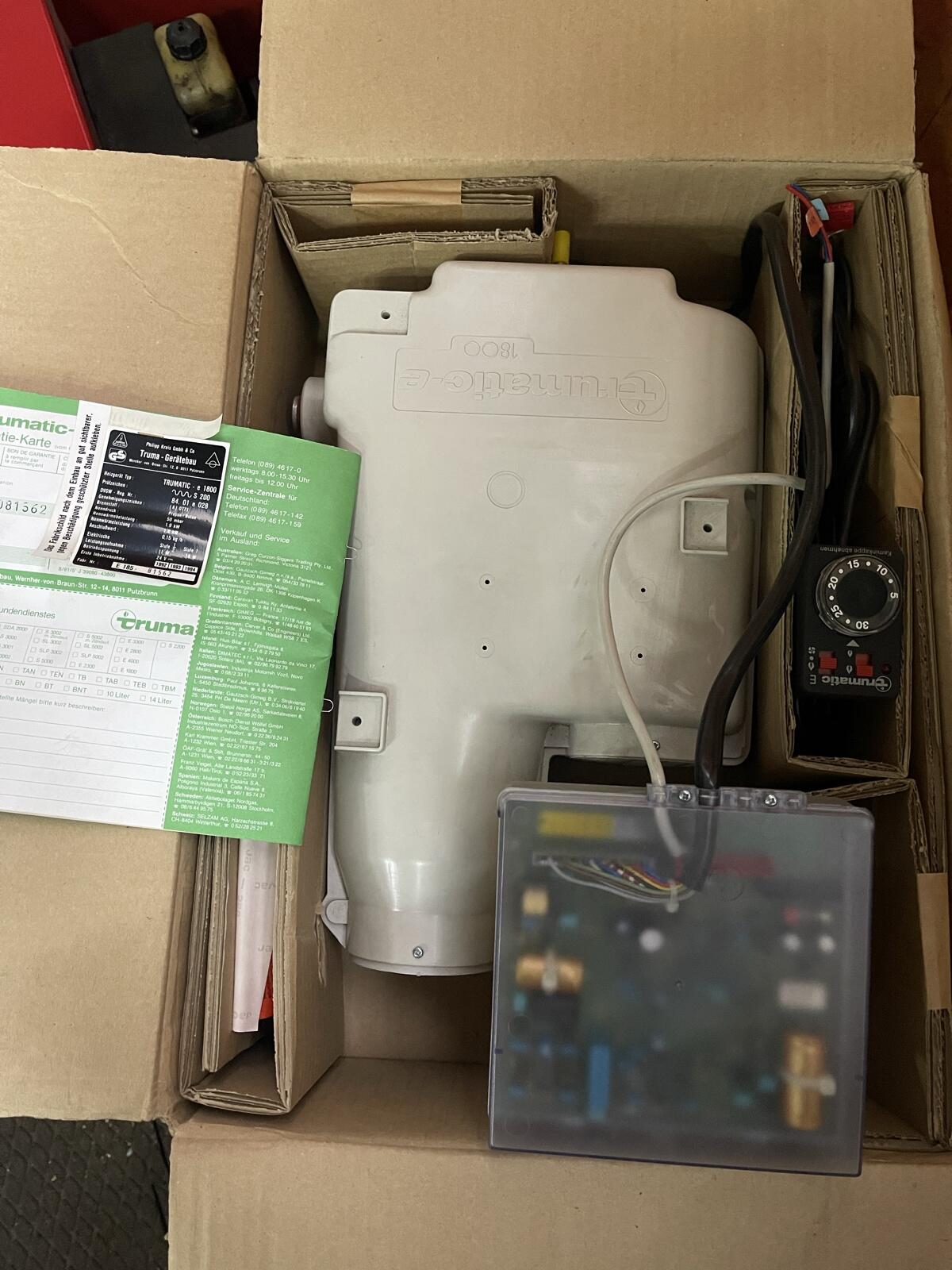 Verkaufe eine neue originalverpackte Trumatic-e 1800 Gasheizung der Firma Truma-Gerätebau (Philipp Kreis GmbH & Co). Diese kompakte Heizung wird typischerweise in Wohnmobilen, Wohnwagen oder Booten eingesetzt. Technische Details (laut Typenschild): Modell: Trumatic-e 1800, Brennstoff: Propan, Butan, Betriebsdruck: 50 mbar, Wärmeleistung: 1,8 kW (Nennwärmebelastung 1,9 kW), Stromversorgung: 24 V Gleichspannung, Leistungsaufnahme: Zwei Stufen (11 W und 18 W), Gasverbrauch (Anschlusswert): 0,15 kg/h. Abholung in Linz oder Versand möglich gegen vorab Überweisung inkl. Versandkosten. Versandkosten bitte vorher anfragen. Der Verkauf erfolgt unter Ausschluss jeglicher Gewähr.