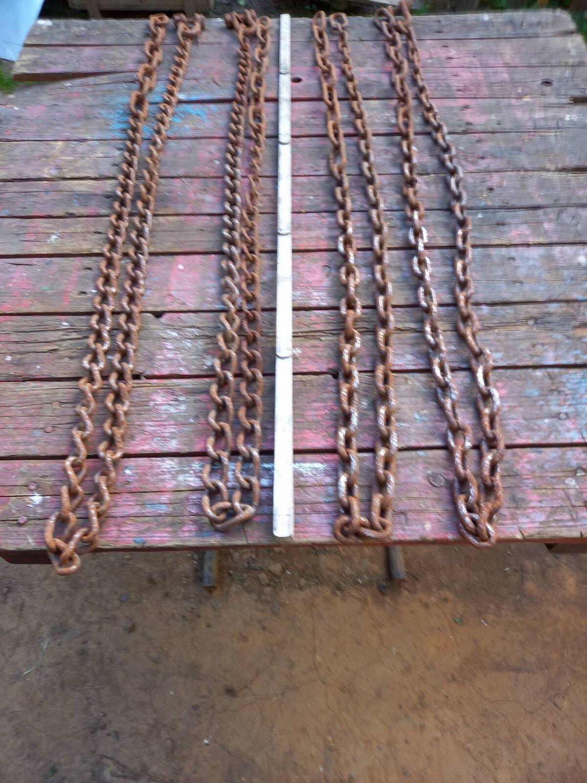 4 Ketten Reststücke, 2 m lang, für Bastler und Hobbytüftler, Heimwerker, Schrauber, Spezialisten, Metallkunst, Schrottskulpturen, kreative Objekte, inkl. Versand für € 15,-, inkl. Versand nach Österreich € 23,-.