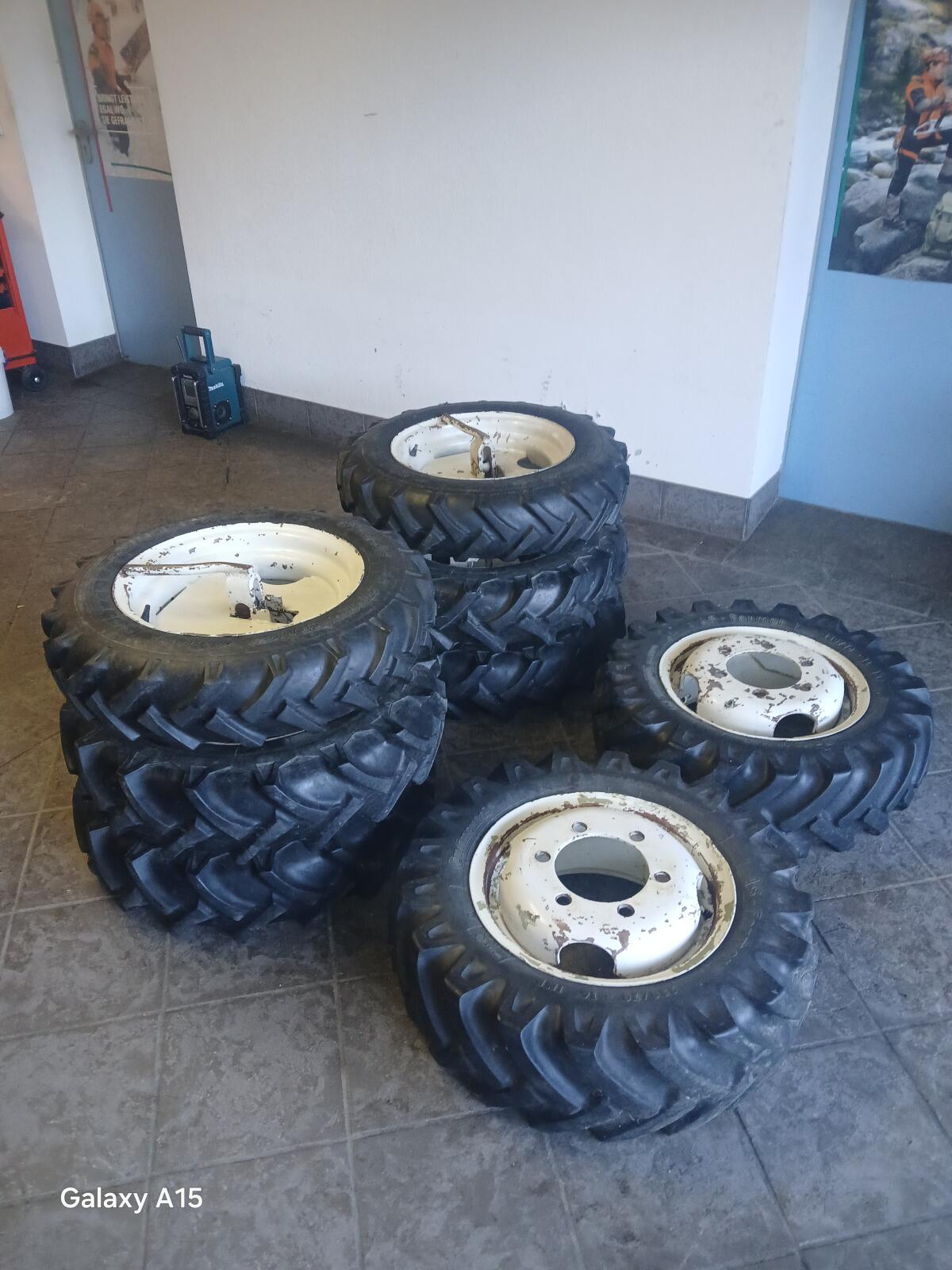 Zwei 230/70-16 und sechs 6.50-16, Drillingsbereifung.