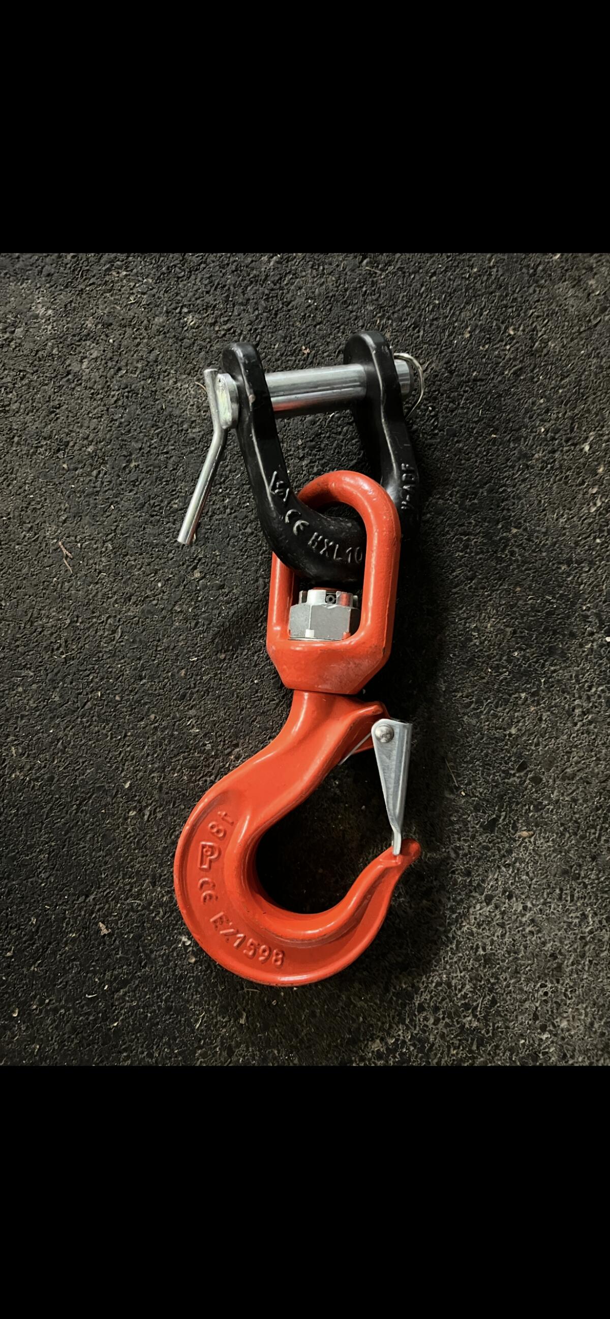Verkauft wird ein Kranhaken, drehbar gelagert für 8 t, mit Schäkel und Bolzen, Dm. 30 mm und Klappsplint. Innenweite Schäkel 72 mm. Original Palfinger. Versand und Abholung möglich.