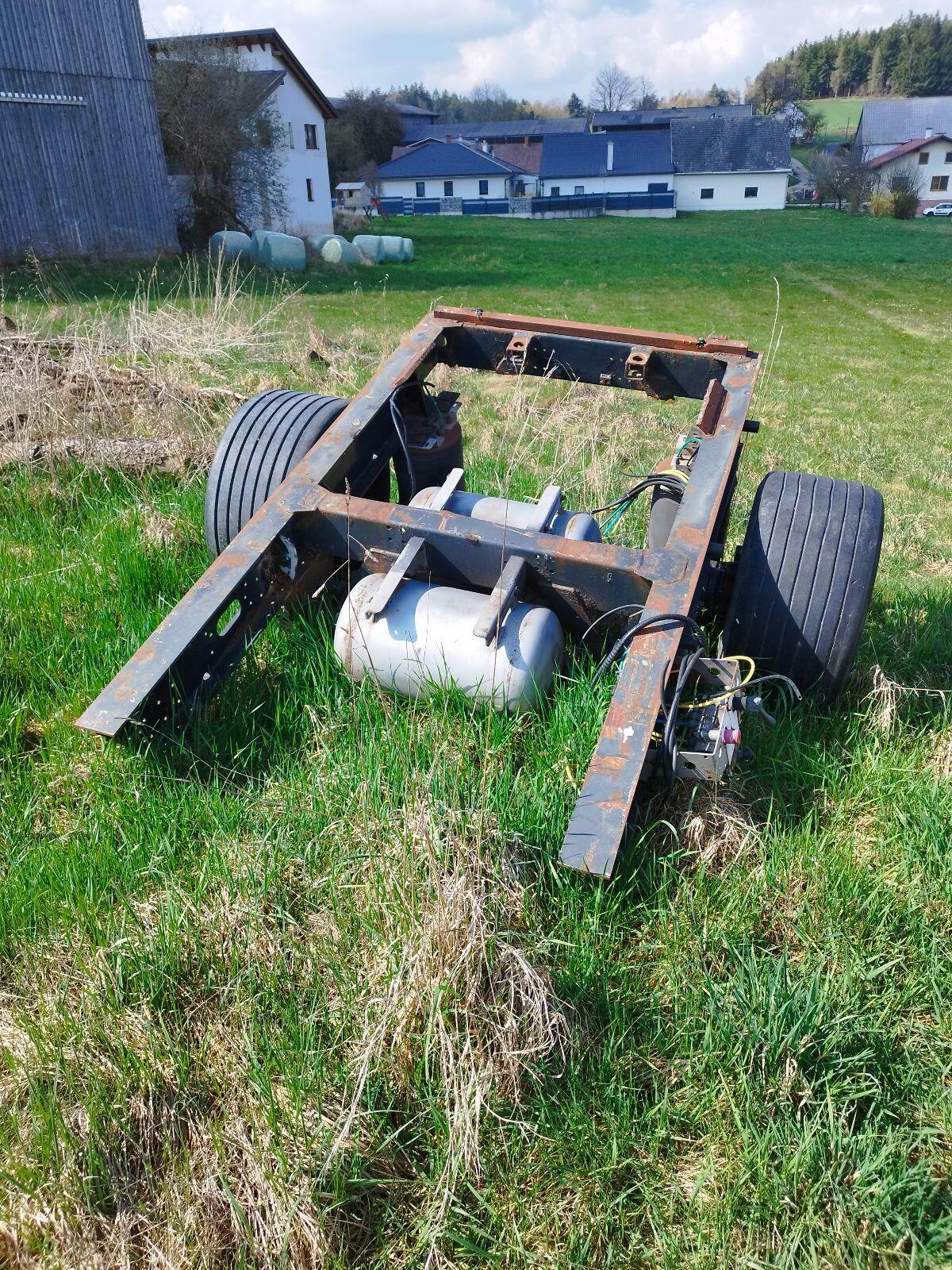 Zum Verkauf steht der mittlere Teil eines Lkw-Anhängers, also Rahmenteil mit der Achse und Luftfederung. Die Achse hat Druckluft-Scheibenbremse. Die Bremsscheiben sind stark angerostet. Die Reifen wurden vom Vorbesitzer (leider zu tief) nachgeschnitten - würd ich so nicht mehr verwenden. Hab das Gestell voriges Jahr gekauft, weil ich die Deichsel und Rahmenvorderteil brauchte. Stand offensichtlich beim Vorbesitzer schon lange rum.
