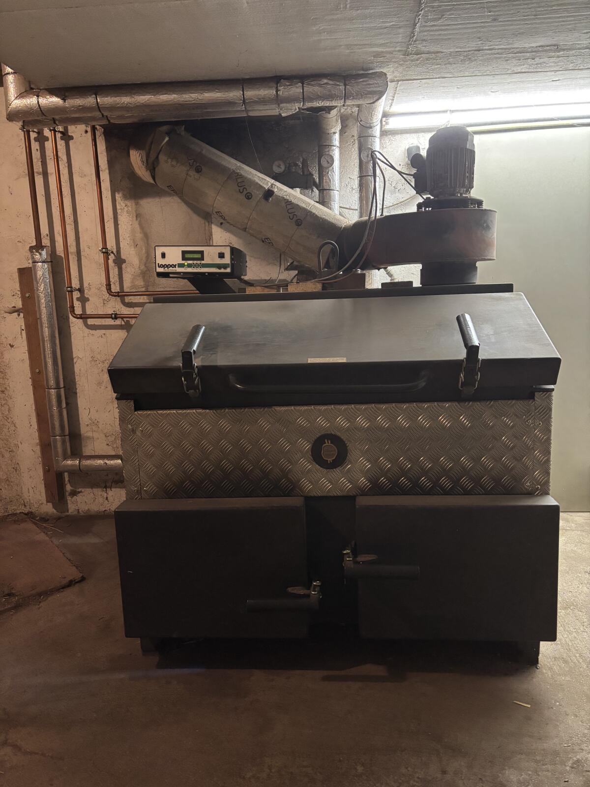Lopper Drummer40, 45kW, Bj. 2006, für Scheitholz bis 1m Länge, inkl. aller Anschlussteile an Heizanlage und Kamin, Original-Steuerung, Installations- und Bedienungsanleitung, kompl. Reinigungsgerät. Jährlich Okt. - April in Betrieb. Derzeit noch in Betrieb, kann ab April abgeholt werden. Gewicht 1.200kg. Bei Abholung mit Pkw-Anhänger ist Lademöglichkeit mit Hebeeinrichtung vorhanden. Zusätzlich: Verkauf von 2 Stk. Membran-Druckausgleichsbehälter je 300l, Abmessung H ca. 110cm, D ca. 60cm, Preis je € 150,-.