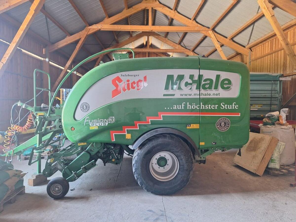McHale Fusion 3 Plus Presswickelkombination, Bj. 2016, durchschnittlich 1.200 Ballen pro Jahr, Gesamtballenanzahl: 11.619 Ballen. Preis: € 57.000,- netto. Standort Eiferding.