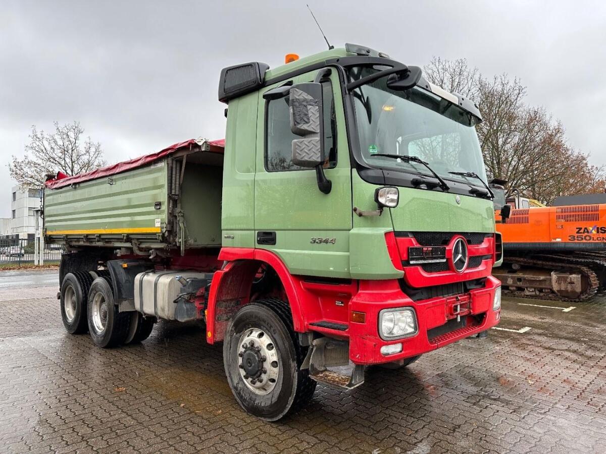 Mercedes-Benz Actros 3344 AK 6x6 Kipper in sehr gutem Zustand. EZ 07/2012, Laufleistung 512.436 km. Leistungsstarker Dieselmotor mit 320 kW (435 PS) und Automatikgetriebe. Euro-5-Abgasnorm, grüne Umweltplakette (4). 3-achsig mit zuschaltbarem 6x6-Allradantrieb, zulässiges Gesamtgewicht 26.000 kg. Fahrerhaus für den Nahverkehr. Scheckheftgepflegt. Ausstattung u.a.: Klimaanlage, Standheizung, Tempomat, feste Anhängerkupplung. Deutscher Brief vorhanden. Top Zustand, sofort einsatzbereit.