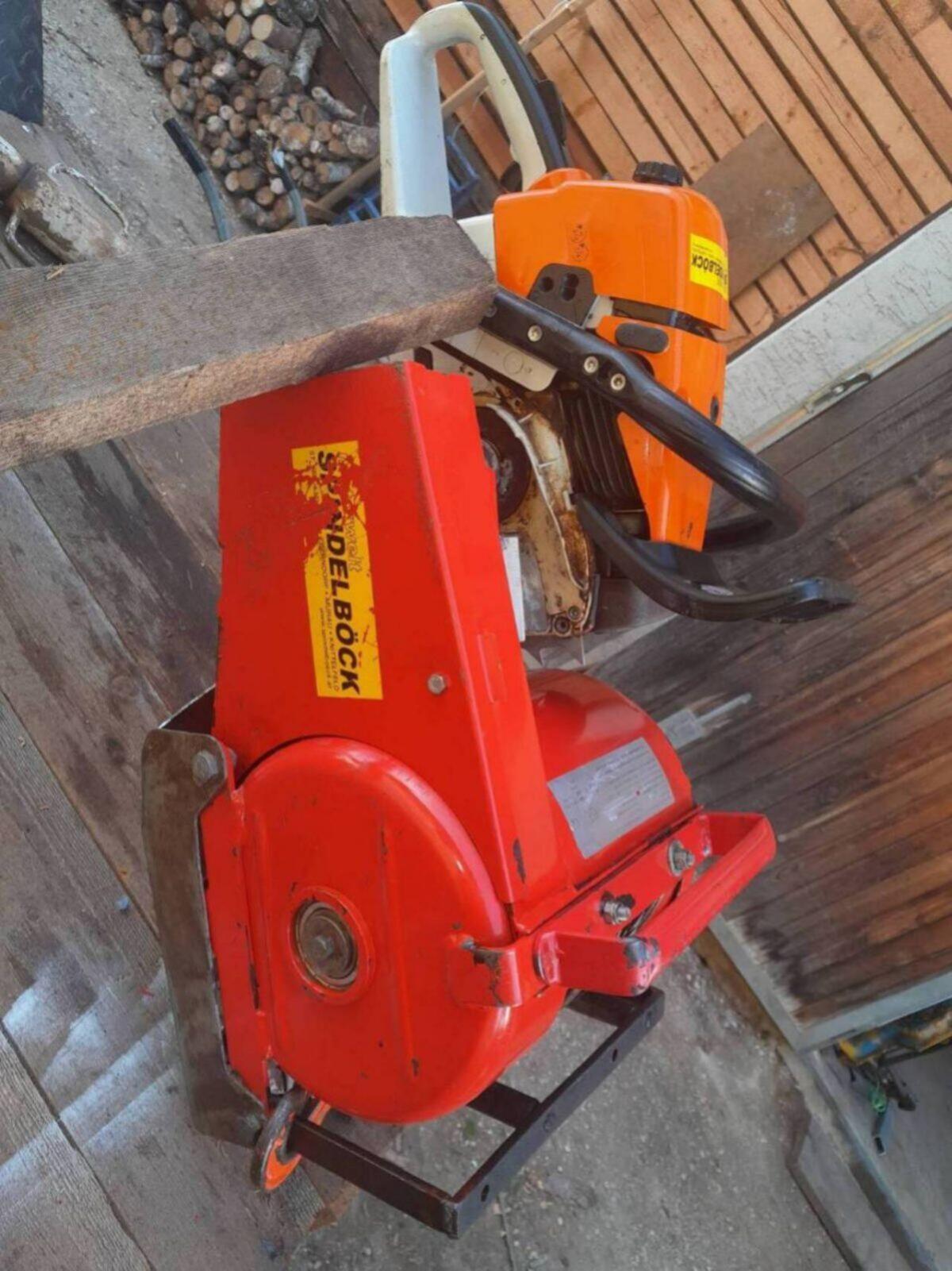 Inkl. 140 m Stahlseil, Stihl MS 361, Anbausatz für Montage auf Traktor-Seilwinden, Bj. 2008, ca. 50 Bstd., 1.000 kg Zugkraft, mit Umlenkung 2.000 kg.