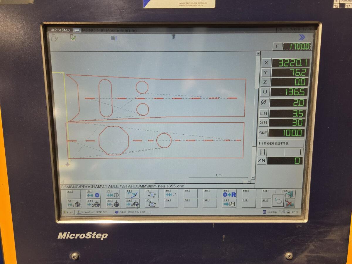 Plasmaschneidanlage Microstep EuroCut-P 3001.15, Arbeitsbereich 1.500x3.000 mm, schneidet Stahl bis 30 mm, Edelstahl und Aluminium, inkl. Software, Bj. 2006, Plasmaquelle Kjellberg HiFocus 160i, Absaugung Donaldson Torit DCE, ist noch im Einsatz, kann gerne besichtigt werden.