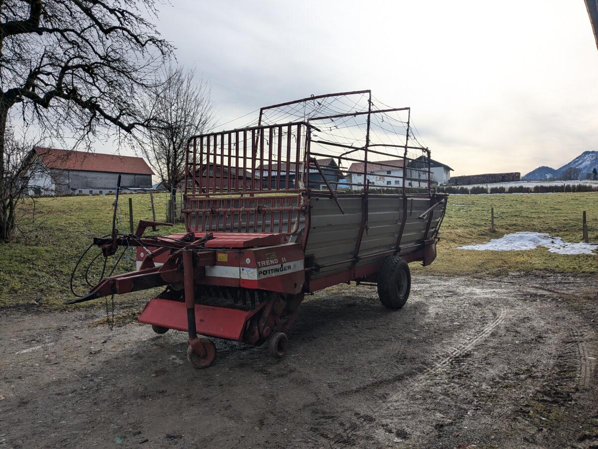 Zum Verkauf steht ein Pöttinger Ladewagen Trend 2, Typ LW 40, der auf unserem Betrieb ausschließlich für Heu genutzt wurde. Er ist voll funktionsfähig und sofort einsatzbereit. Technische Daten: Ladevolumen: ca. 35 m³, Messeranzahl: 9 Messer, Fördersystem: 3-geteilte Förderschwingen, Pick-up: 150 cm, hydr. gesteuert, Antrieb: Zapfwelle (Förderaggregat & Kratzboden), Steuerung: mechanisch, Achslast: 4.000 kg, Bereifung: 11.5/80-15.3. Besonderheiten: Notbeleuchtung vorhanden, nur für Heu im Einsatz – kein Silagebetrieb, Zylinder der Pick-up vor 5 Jahren abgedichtet, wurde einmal umfassend repariert. Wird verkauft, da er nicht mehr benötigt wird. Optional WWGW + € 800,-.