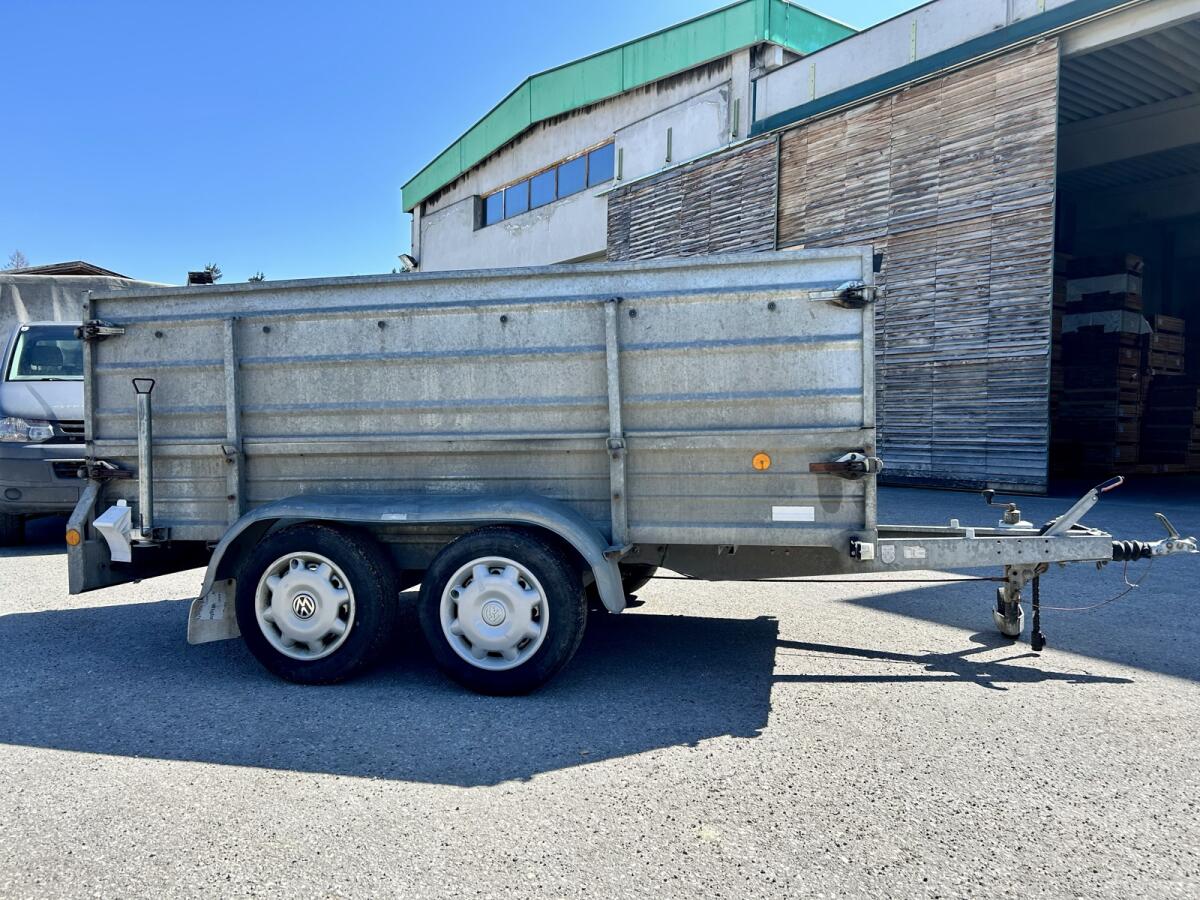 Pongratz PKW-Anhänger Innenmaße: Länge 300 cm, Breite 150 cm, Höhe 100 cm. Stirnwand klappbar, hintere Bordwand mit durchgehendem Rohrscharnier. Inkl. Plane und Querträger. Bodenplatte 15 mm + 27 mm Siebdruckplatte, 2 Stk. Stützfüße hinten. Gesamtgewicht 2.500 kg. Bj. 2012. Preis: € 2.850,-.