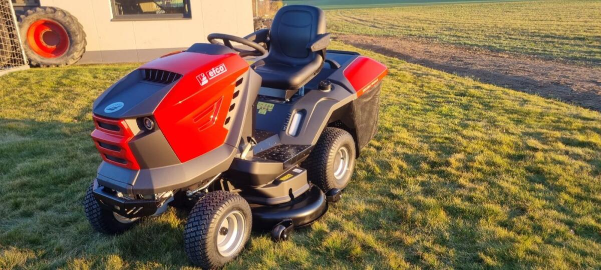 NEUGERÄT – efco EF 106/24 Aufsitzmäher TECHNISCHE DATEN: Motor: Emak K 2400 Hubraum: 708 cm³ Leistung: ca. 12,3 kW Getriebe: Hydrostat (Fußpedalsteuerung) Schnittbreite: 102cm Schnitthöhe: 25- 90 mm (zentral einstellbar) Fangkorb: 320 Liter, mit akustischem Füllstandssignal Tankvolumen: ca. 8 Liter