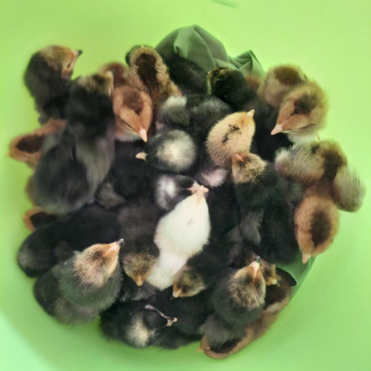 Schöne Eintagsküken von reinrassigen großen Vorwerk, großen Mechelner und Zwergwelsumer rostrebhuhnfarbig zu verkaufen.