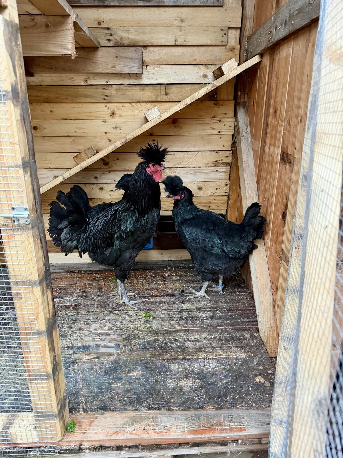 Gebe wegen guter Nachzucht meinen schwarzen Zuchtstamm ab. 1 Hahn und 2 Hennen.