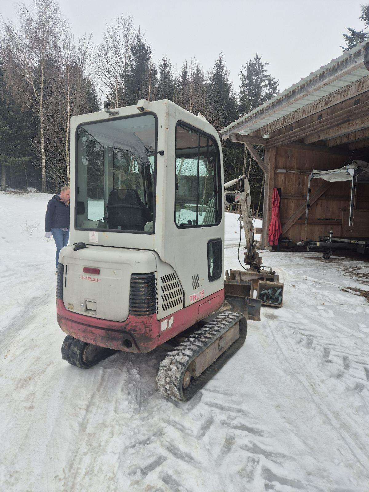 Zum Verkauf steht eine kompakte Baumaschine Takeuchi TB016 in Langarm-Ausführung, Bj. 2008, mit ca. 4.203 Bstd. Die Maschine ist gepflegt, voll funktionsfähig und sofort betriebsbereit. In den letzten Jahren wurde sie nur gelegentlich eingesetzt. Ausgestattet mit geschlossener Kabine inkl. Heizung, Langarm, Arbeitsschild mit Schildverbreiterung sowie hydr. Schnellwechsler. Inkl. 4 Anbaugeräten: Böschungslöffel mit Schwenker (80 cm), Grab-/Tieflöffel (60 cm), Glattlöffel (38 cm) und Speziallöffel (23 cm). Großes Service vor ca. einem Jahr (Öle, Filter, Wartung). Ketten neu, eine Kette leicht beschädigt (reparierbar). Herzbolzen ist als Ersatzteil dabei.