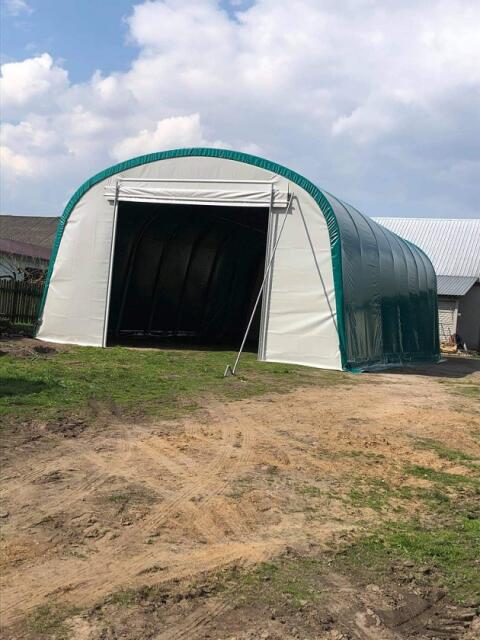 12 m x 8 m méretű tárolósátrat kínálok. Az oldalfalak 6 m magasak, a bejárat pedig 3 m magas, így kényelmesen használható. A sátor nagyon jó állapotban van, sérülések nélkül. Robusztus, időjárásálló és sokoldalúan használható.