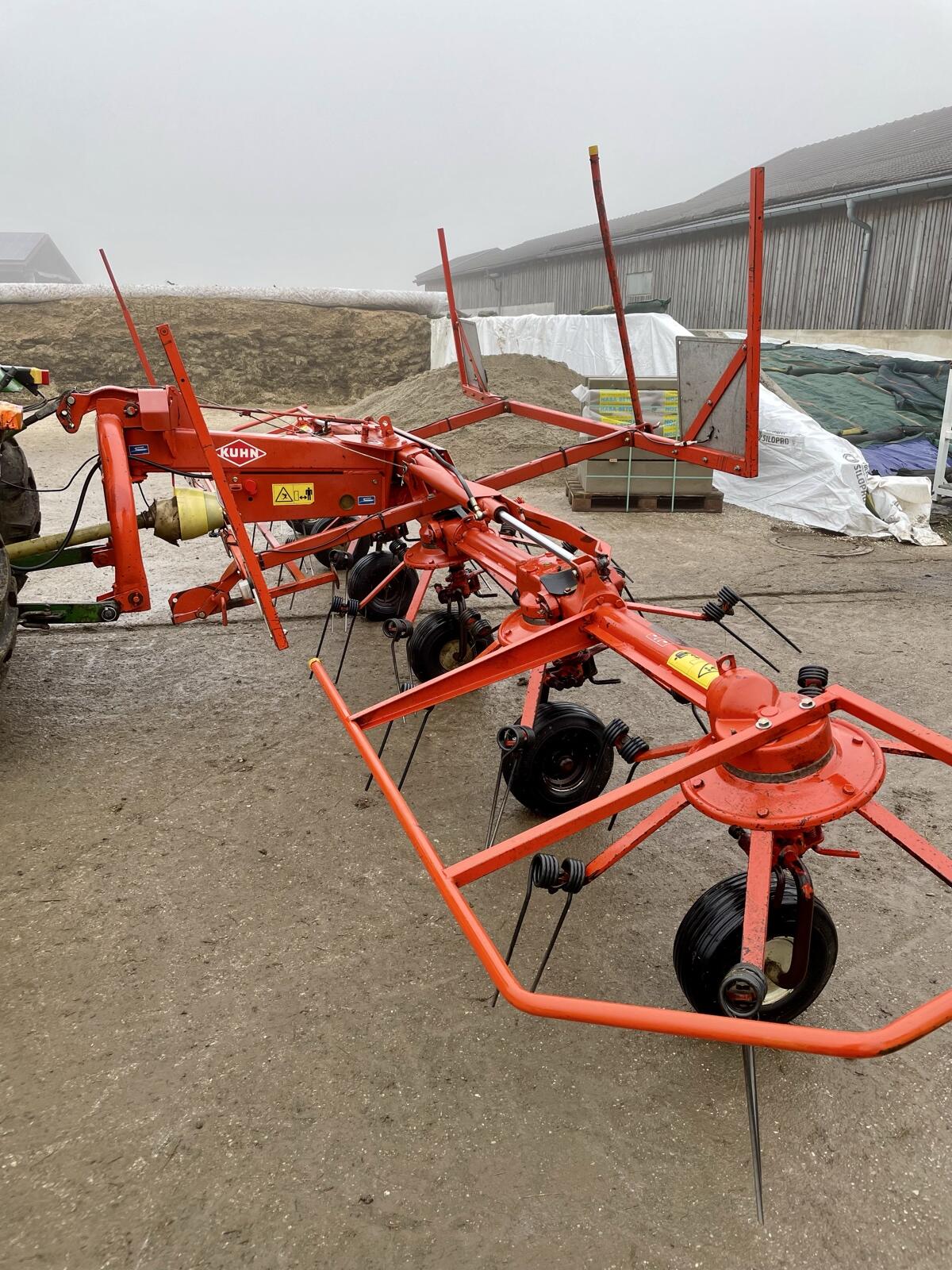 Sehr gut erhaltener Kreiselheuer. 1. Hand, immer in der Halle gestanden und top gewartet worden. Sofort verfügbar, Zapfwelle ist dabei. Der Kreiselheuer hat eine mechanische Grenzstreueinrichtung, es können die Räder einzeln mit einem Handgriff schräg gestellt werden, dann streut der Kreiselheuer vom Randweg nach innen. Keine Hydraulik erforderlich, funktioniert einwandfrei. Haben den Kreiselheuer mit einem 38-PS-Schlepper ohne Allrad gefahren, nur 1 ew Hydraulikanschluss erforderlich. Original Montage- und Betriebsanleitung gibt's dazu. Die Kuhn Kreiselheuer gelten als schlagkräftig, robust und gut durchdacht. Perfekt für den professionellen landwirtschaftlichen Einsatz.