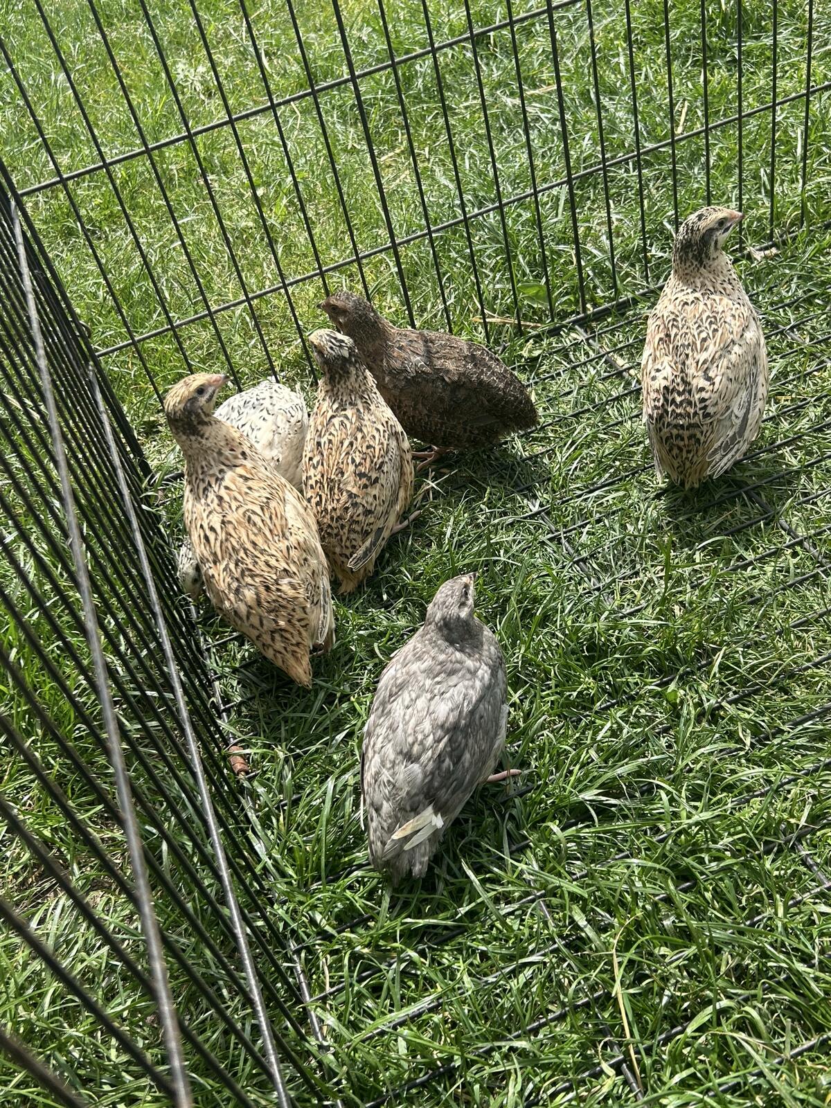 6 Wochen alte bunte Truppe sind auf der Suche nach einem neuen Körnergeber. Hennen € 5,-, Hähne € 2,50,-.