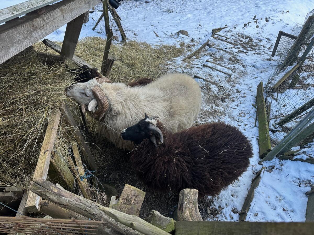 Mächtiger, weißer Waldschafwidder, 4 Jahre alt, sowie kleiner, schwarz, 3/4 Jahr alt, abzugeben.