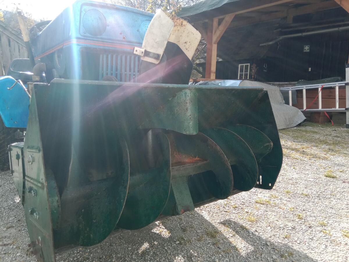 Sehr guter Zustand, mit Hebellage für Kaminverstellung und Scheinwerfer, nur selten verwendet, Rapid Anbauflansch. 80 cm breit, mit Kommunalbereifung für den Winter.