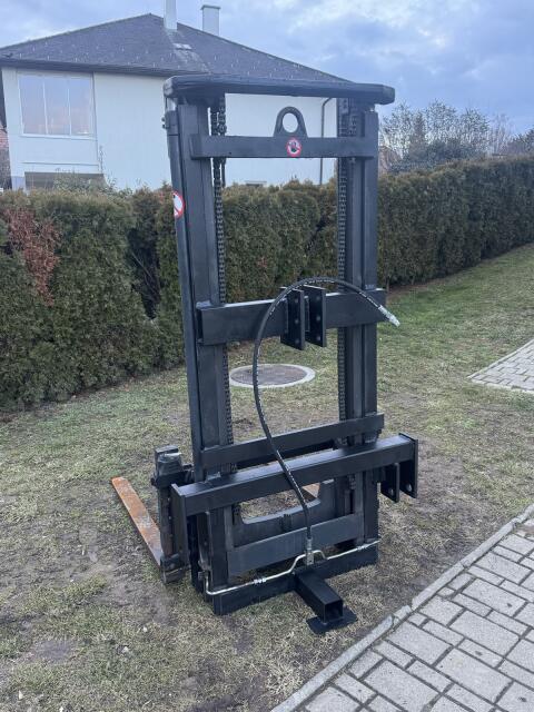 Hubhöhe 2, 8 m, Bauhöhe 1, 8 m, Hubkraft 1.800 kg, Freisichtmast, Gabellänge 1, 2 m. Egyéb traktor tartozékok Hátulfüggesztett rakodóvilla