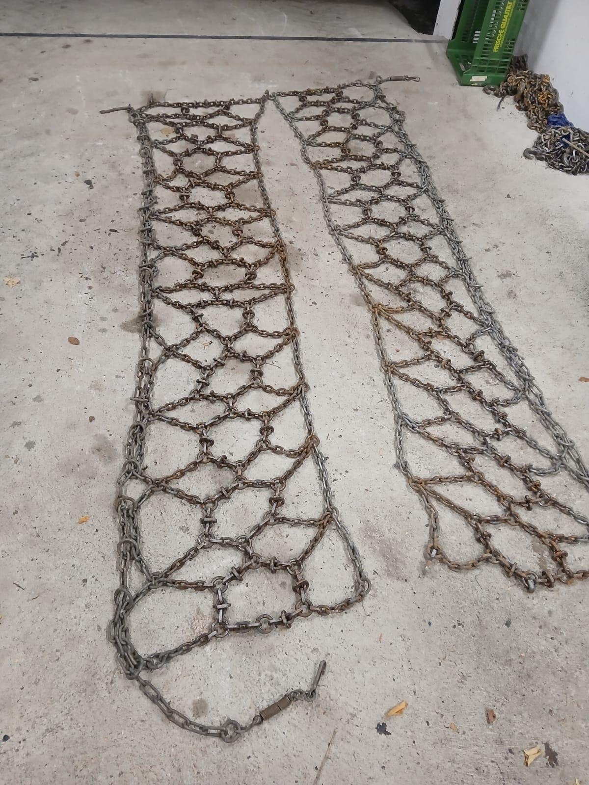 4 Stk. Stachelnetzketten. Ketten wurden noch nie gebraucht. Ketten sind speziell für harten Forsteinsatz geeignet. Größen siehe Fotos. 2 Stk. von den großen: € 3.000
