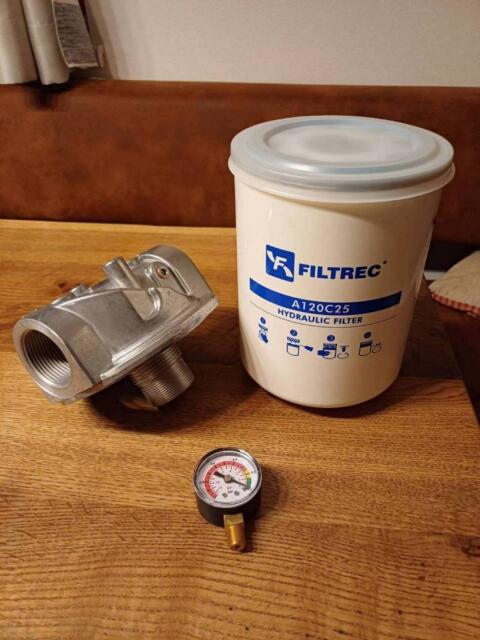 Verkaufe neuen Hydraulikfilter mit Vakuummeter und Saugfiltergehäuse. Zum Nachrüsten an Baumaschinen, Rückewagen, Traktor. Größe 1 1/4 Zoll Anschluss. Keine Garantie
