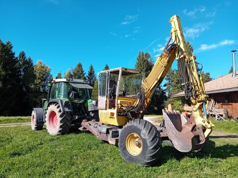 Menzi Muck Turbo5000 T1. Der Bagger ist entsprechend dem Alter in einem guten Zustand. Er kann mit einem Traktor gezogen werden, sehr praktisch für Landwirtschaft. D