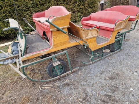 Verkaufe kombinierten Pferdeschlitten, Kutsche, hydr., mit 4 Sitzbänken, 2-Spänner. Gut erhalten und voll funktionsfähig. Lópiac Kocsi