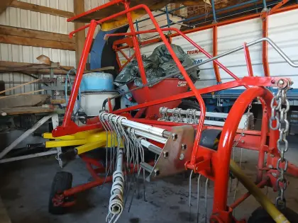 Sehr gut erhaltener Pöttinger Schwader mit Tastrad und Gelenkwelle, sämtliche Zinken erneuert, sofort einsatzbereit. Szálastakarmány betakarítók Rendsodró