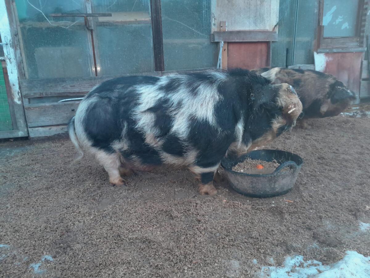 Zwei Eber (nicht kastriert, sehr zutraulich), 2, 75 und 1, 75 Jahre, abzugeben. Schwäbisch-Häller-(Minischwein)-Kreuzung. Sertéspiac Sertéspiac