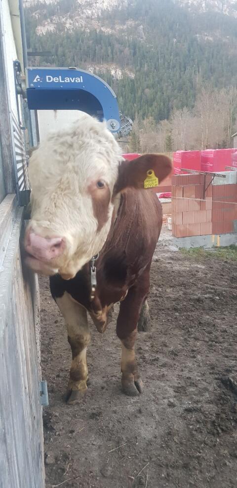 Verkaufe trächtige Fleckviehkalbin. Mit Horn (kann auf Wunsch noch enthornt werden). Schönes, gutmütiges, leistungsstarkes Tier (Mutterkuh lag deutlich über unserem