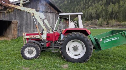 Verkaufe alten Steyr 545 (540g) mit Kabine, Türen, Frontlader und Servounterstützung. Wir haben uns den Traktor 2010 für leichte Tätigkeiten am Hausgrundstück angesc