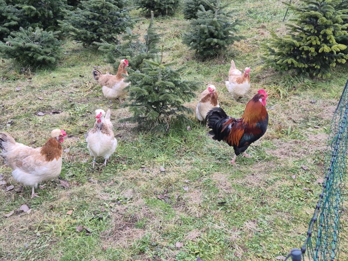 Verkaufe meine Hühnertruppe, weil ich mit den Hühnern aufhöre und mit Enten anfange. In der Truppe gibt es einen Sulmtaler-Maran Hahn, drei Grünleger Hennen, zwei Br