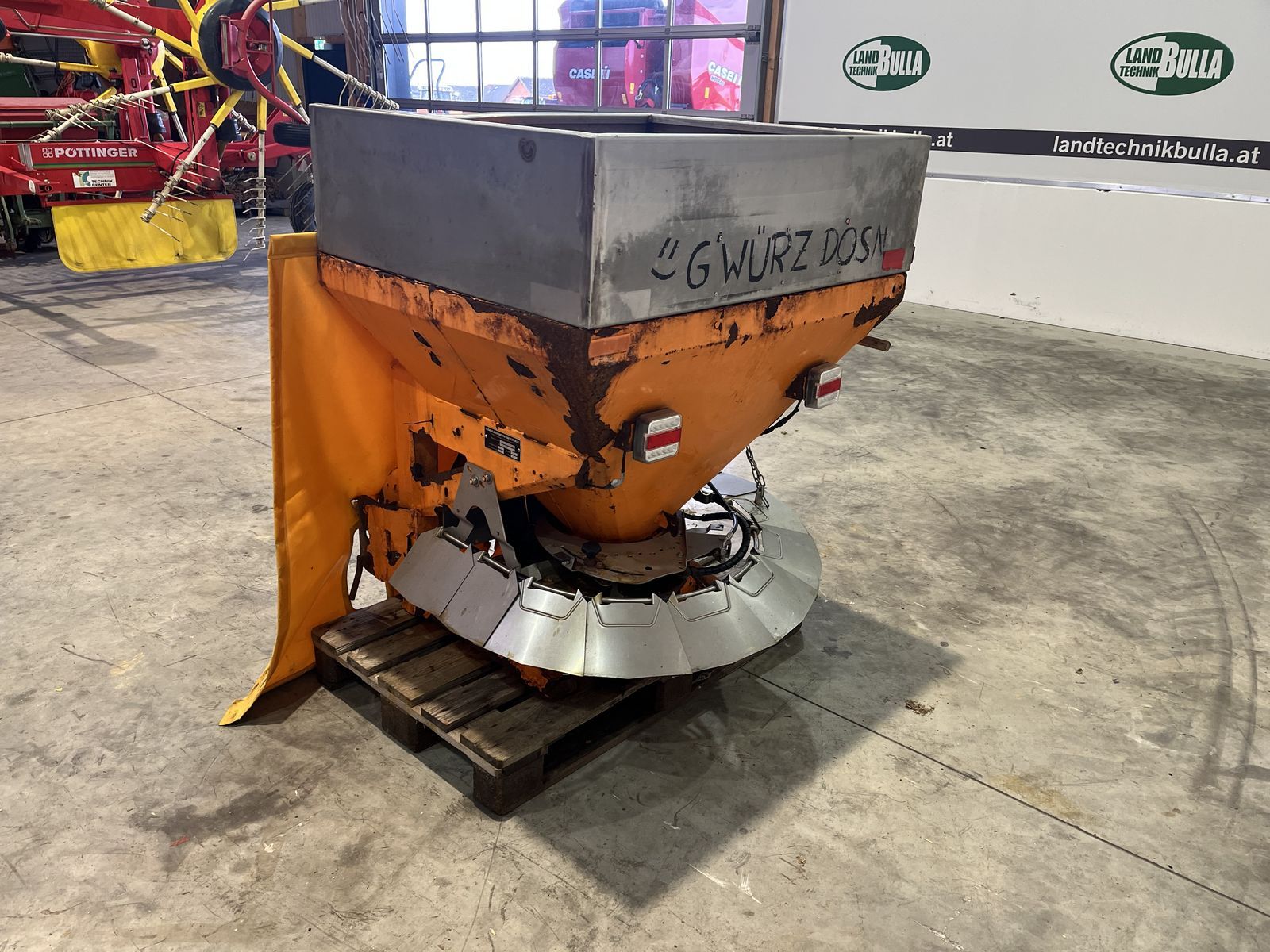 AMAZONE E+S Streuer + Gelenkwellenantrieb + Bj. 2009 + Inhalt ca. 600 Liter mit Aufsatz Niro + Streuen von Splitt, Sand und Salz möglich + Streubreitenverstellung 1-8m mit Streufächer + Schieber hydraulisch + Abdeckplane + Schmutzfänger vorne zum Schutz von Traktor und Streuer + Beleuchtung