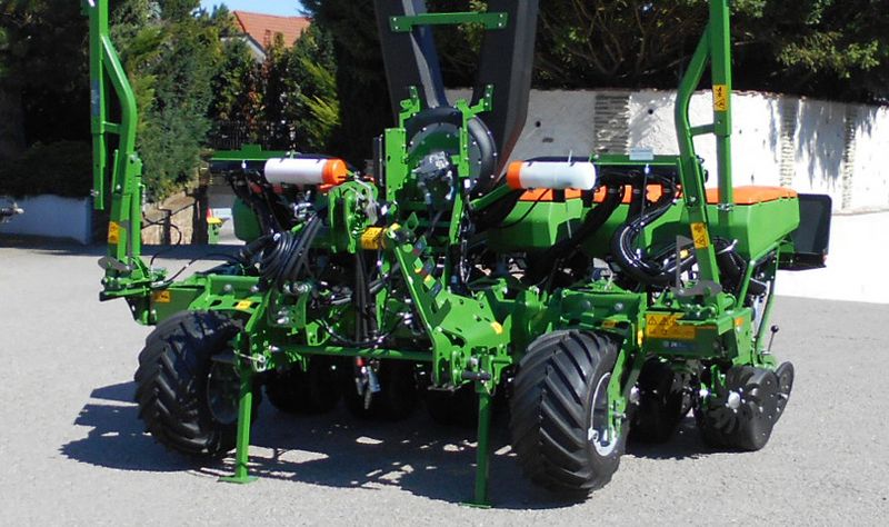 Ausstellungsmaschine inkl. teleskopierbarem Rahmen, 6-reihig, Reihenabstand von 45-75 cm einstellbar, hydraulischer Gebläseantrieb, Beleuchtung, Spuranzeiger, Vereinzelungsantrieb ElectricDrive, PreTec-Mulchsaatschar, 55-l-Saatgutbehälter, Optogeber für Saatgutüberwachung, Sternräumer, Profi-Elektronik für PreTec-Schar, Microgranulatstreuer mit 17-l-Behälter, Isobus-Maschinensteuerung inkl. Amatron 4 , Füllstandssensor, Radarsensor und ein Satz Säscheiben.