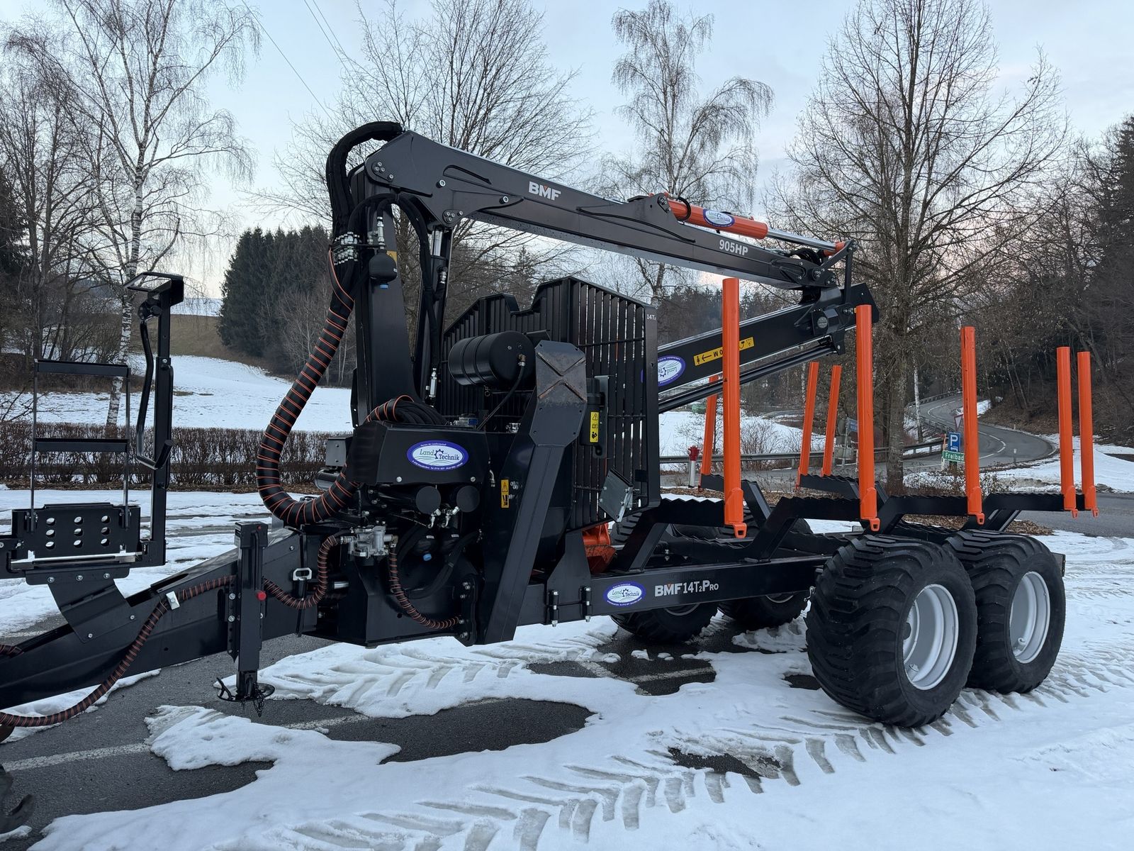 • Forstanhänger 14 Tonnen • Doppelrahmen ausziehbar • Rahmenverlängerung • Scharmüller Zugöse • Gesamtlänge 7.100 mm • Knickdeichsel mit 2 Zylindern • Untenanhängumg • Stehpodest mit Halterahmen • Kurbelstützfuss • Forwarder Rungen • Black Burin BB 5 Radantrieb mit Steuerung • Flipi Beleuchtung beweglich • Parkbremse • Motorsägenhalterung • Bereifung 550/45 - 22,5 • Aussenbreite 2.450 mm • Verstärkte Felgen mit Ventilschutz • 5 Rungenpaare • Druckluftbremse auf 4 Räder • Eigenölversorgung • 130 cc Kolbenpumpe • Hydrauliktank 180 Liter • Ölkühler • Forstkran 905 HP • 9.710 mm Reichweite • Flap Down Abstützung • Krandämpfer • Forstgreifer 0,27 Öffnungsweite 1.560 mm • Pendelbremse • 5,5 Tonnen Endlosrotator • LED Scheinwerfer • Parker P 70 Block & HBC Funk • sofort verfügbar
