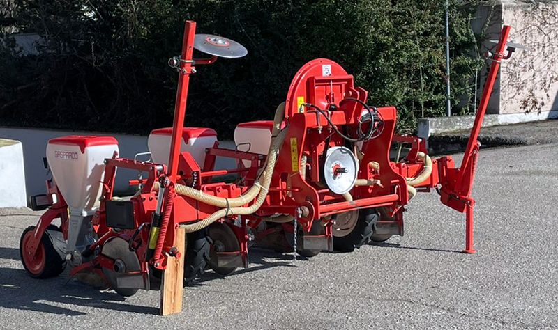 4-reihige Einzelkornsämaschine für Mais, Reihenabstand 75 cm, Farmflex-Andruckrollen, hydraulische Spuranzeiger, Gelenkwelle, Säscheiben f. 4 x Mais u. 2 x f. Kürbis, abdriftminderer Gebläseschutzkasten, Beleuchtung. Vermittlungsverkauf.