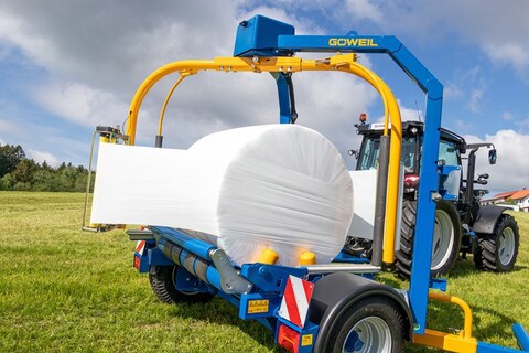 Grundausstattung:DoppelwickelarmHydraulisch kippbarer Wickeltisch4 Stück Ballentransportbänder mit Bandführung und 4 Stück BallenleitrollenBallenaufnahme von vorne, Ballenablage nach hintenFolienvorstreckeinheit 750mmFolienabschneider (Precision Cut)Folienmagazin für 6 Rollen FolieHydraulisch verstellbare Schwenkdeichsel mit UnterlenkeranhängungBereifung 380/55-17 AWLicht- und BlinkanlageLED ArbeitsscheinwerferVollautomatische Programmsteuerung ISOBUSTechnische Daten:Gewicht: 1'780 kgLänge: 3'940 mmBreite: 2'750 mmHöhe: 3'060 mmBallendurchmesser 0.90- 1.50 m mit StandartwickelarmBallendurchmesser 0.90- 1.35 m Höhe ändert sich auf 2'785 mmÖlbedarf: ab