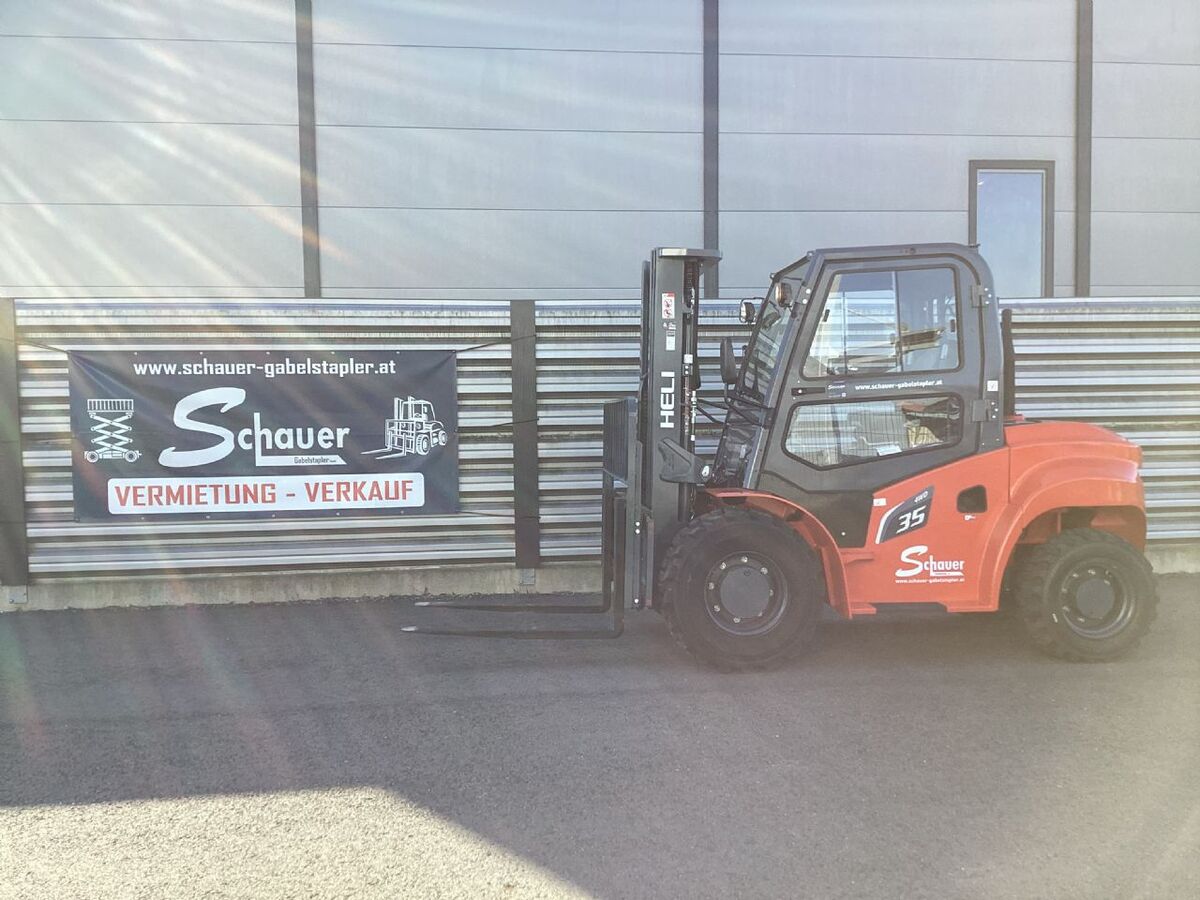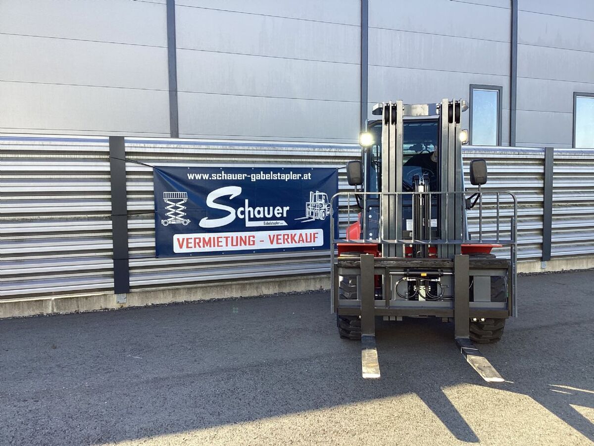 Bauart: Frontstapler / Geländestapler, Tragkraft: 3500kg, Hubhöhe: 4700mm, Bauhöhe: 2400mm, Gabellänge: 1220mm, Batterie: 12V , Bereifung vorne: Luft Einfach 80 - 100% , Bereifung hinten: Luft Einfach 80 - 100% , Anbaugeräte: Seitenschieber, Sonderausstattung: 3. Ventil, 4. Ventil, Arbeitsscheinwerfer hinten, Arbeitsscheinwerfer vorn, Heizung, Vollkabine, CE Zertifikat, Sonderausstattungbeschreibung: Grammer Federsitz Beschreibung: Geländestapler 4WD Motor: Kubota V2607