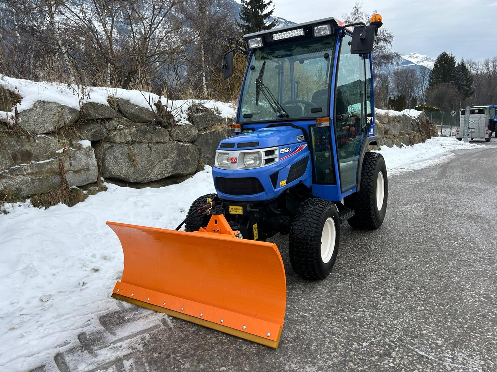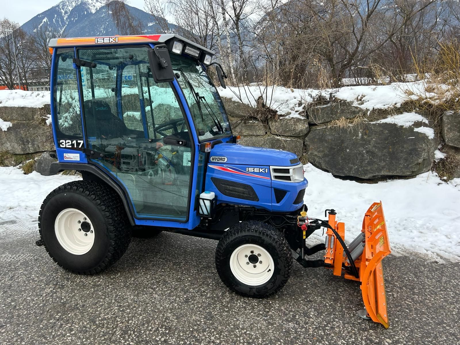 Iseki TM 3217 Hydro mit Kabine - Betriebsstunden: 287h -15 kW (ca. 20 PS) bei 2.500 U/min - Hydrostatgetriebe mit Zwei-Pedal-Steuerung Anbaugeräte: * Schneepflug (neu) * Mähwerk (gebraucht) * Laubgrassauger (gebraucht) Hydraulik: * Bedienhebel für Heckhydraulik im Kotflügel * Mechanisches Hydraulikventil mit 2 Funktionen: * 2x doppelwirkend mit Schwimmstellung * einfachwirkend mit Schwimmstellung * Zwei Einzelhebel im rechten Kotflügel Technik und Ausstattung: * Straßenzulassung (StVZO) * 7-polige Anhängersteckdose * Betriebsstundenzähler * Tank- und Motortemperaturanzeige * Höhenverstellbare Maulkupplung Kabine: * Sicherheitsrahmen (CE-geprüft) * 4-seitige Verglasung mit Tönung * Aushängbare Türen, breiter Einstieg * Rutschsicherer Boden mit Gummibelag * Scheibenwischer, Außenspiegel, Sonnenrollo * Heizung mit Gebläse und Luftdüsen * Schalldämmende Innenverkleidung * Scheibenwaschanlage vorn * LED-Rundumkennleuchte Bereifung: * Vorn: 24 x 8.50 - 12 (Rasenprofil) * Hinten: 315 / 75 D15 (Rasenprofil) Frontkraftheber: * Kuppeldreieck Kat. 0 (werkzeuglos) * Doppeltwirkender Zylinder für Heben/Senken