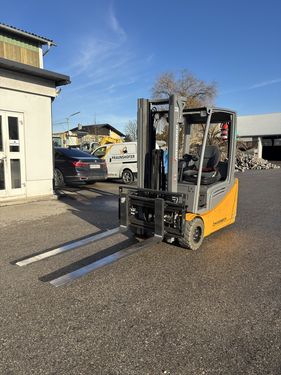 Bauart: Frontstapler / Elektro 4 Rad-Stapler, Tragkraft: 2000kg, Hubhöhe: 5500mm, Bauhöhe: 2350mm, Freihub: 1800mm, Gabellänge: 1150mm, Anbaugeräte: Seitenschieber, Sonderausstattung: 3. Ventil,