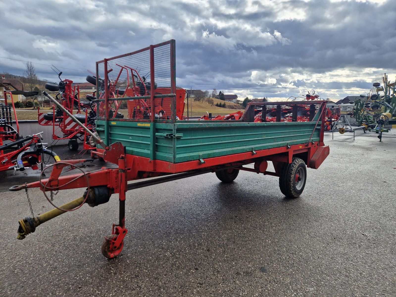 Kirchner Miststreuer mit 4 stehenden Walzen, mit Gelenkwelle, mechanischer Kratzbodenantrieb.