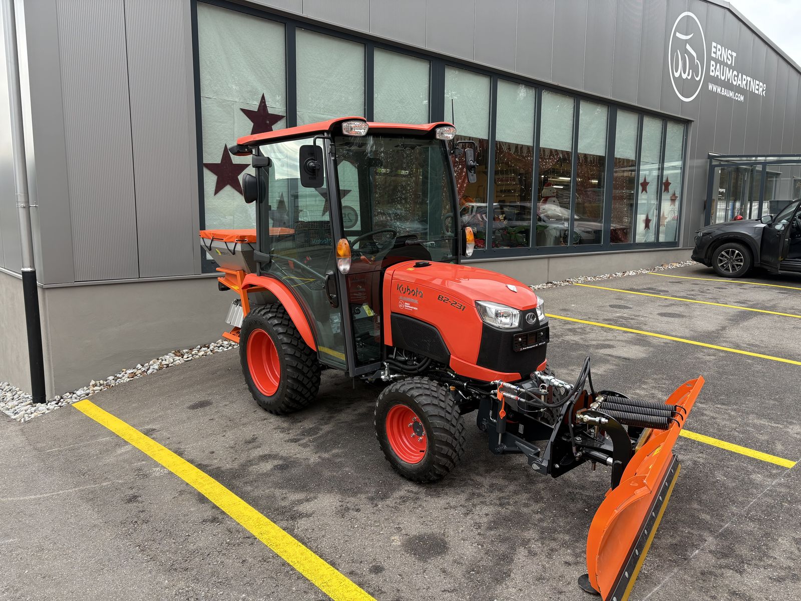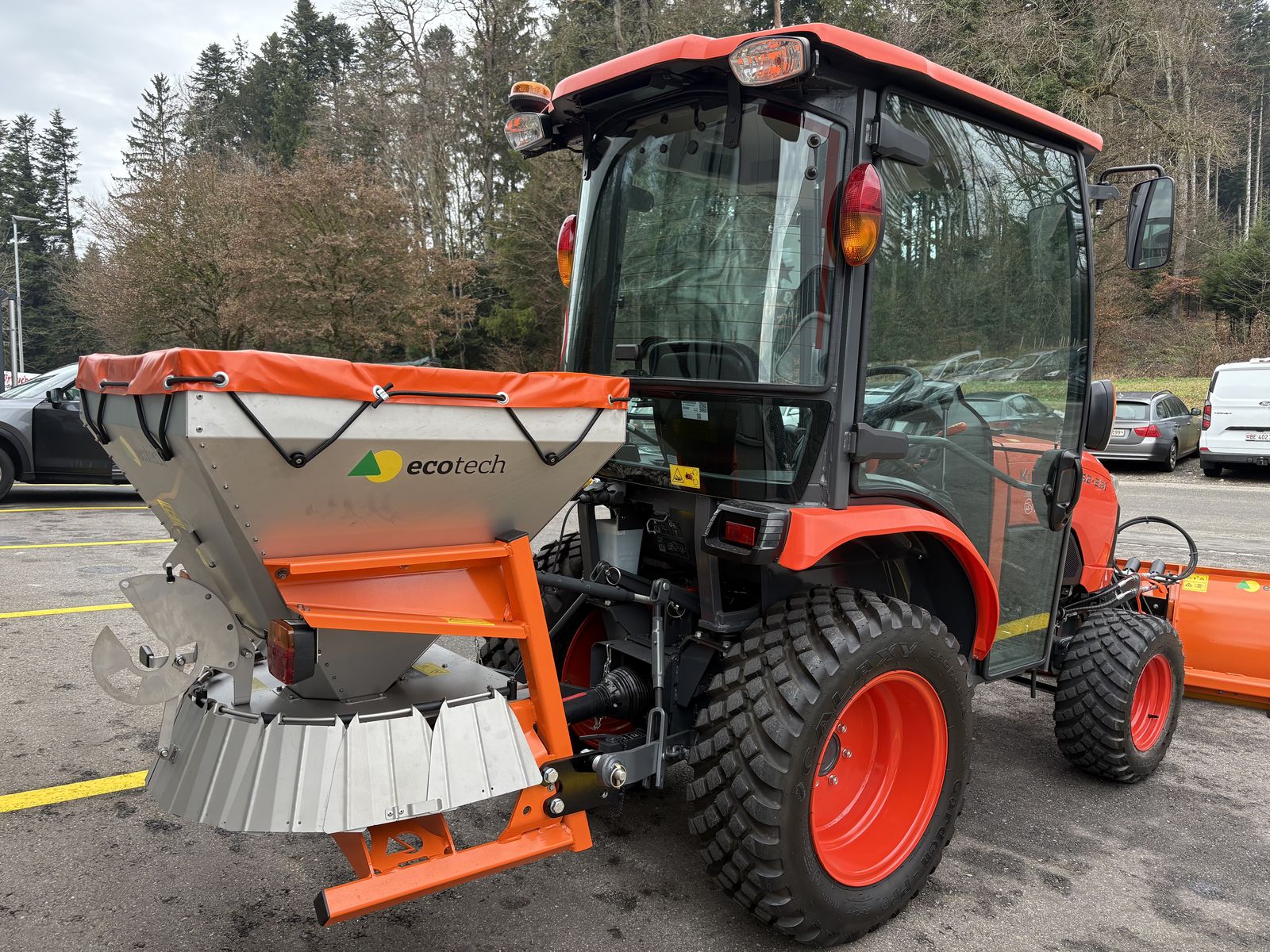 Aussenbreite 1260mm 3-stufiger Hydrostaat mit automotiver Nachrüstung Klimakabine mit Heizung Allradantrieb mit Bi-Speed Bedienung über Kreuzhebel mechanisch Komfortsitz Luftgefedert Räderpaar 240/60R12 und 280/70R18 Drehlicht mit Halter Heck Arbeitsscheinwerfer ab MFK Eco Salzstreuer XTB250 250 Liter Behälter rostfrei Gelenkwelle Schutztrichter und Streubegrenzer Abdeckplane Rührwerk für Salz Beleuchtung Eco Schneepflug 160cm Kunststoffschürfleiste Gleitkuven Kupplungsdreieck