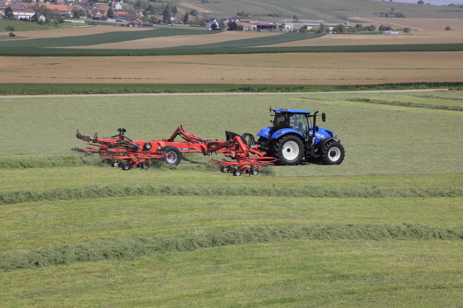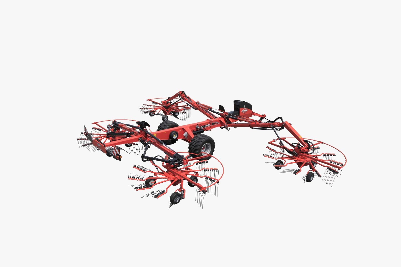 Der GA 13031 ist ein einfacher Vierkreiselschwader ohne ISOBUS. Die Arbeitsbreite ist hydraulisch von 8,40 bis 12,50 m verstellbar, ebenso die Schwadbreite von 1,40 bis 2,40 m. Durch den vollhydraulischen Antrieb sparen Sie täglich eine Stunde Wartungszeit.