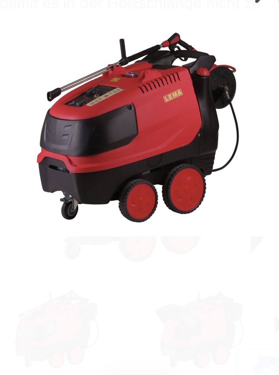 Technische Daten Betriebsdruck 240bar Arbeitsdruck 220bar Fördermenge 1.300l/h max. Zulauftemperatur 50°C Umdrehung Pumpe 1.450U/min Spannung 400V/50Hz E-Motor 8,4kW / CEE 32 A Hochdruckschlauch 15m Hochdrucklanze Doppellanze Komfortpistole ja Dreckfräser optional Schlauchaufroller optional Max. Heiztemperatur 90/140°C Sicherheitssteuersp. 24V Heizöltank 30l Gewicht 178kg Abmessung 105x69x86cm E-Kabel 4m