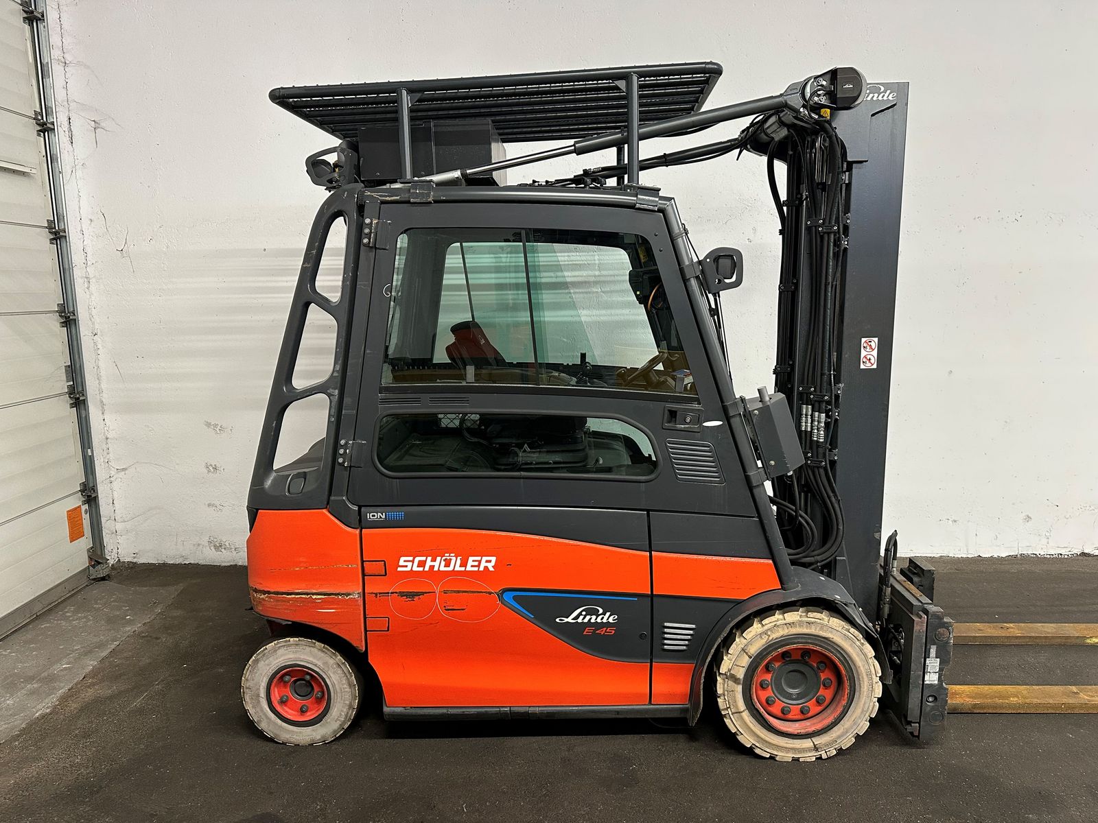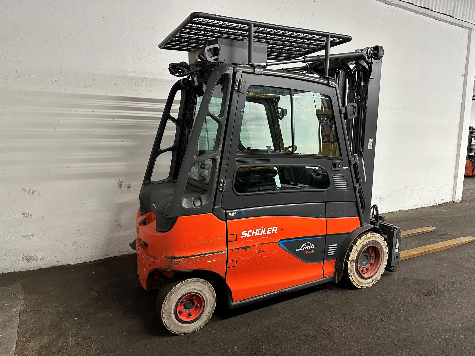 LINDE Elektrostapler E 45HL-01/600 - Baujahr: 2019 - 12372 Betriebsstunden Tragkraft: 4500 kg / 600 mm Lastschwerpunkt Hubmast: TRIPLEX-Freihub Hubhöhe: 5515 mm Bauhöhe: 2700 mm Freihub: 1760 mm Gabellänge: 2350 mm Bereifung: Super-Elastik - NON-Marking - Zinkenverstellgerät - Seitenschieber - Kabine mit Heizung und KLIMA !!!! - Batterie 80 V / 930 Ah - Bauj. 2020 - 08/2025 regeneriert !!! - Kamera vorne u. hinten - luftgefedeter Fahrersitz - LED-Scheinwerfer vorne u. hinten - BlueSpot hinten GUTER ZUSTAND !!! ORIGINAL-LACK !!! servicegepflegtes Gerät !!! Für etwaige Rückfragen steht Ihnen Herr Thomas Lehner natürlich gerne zur Verfügung !