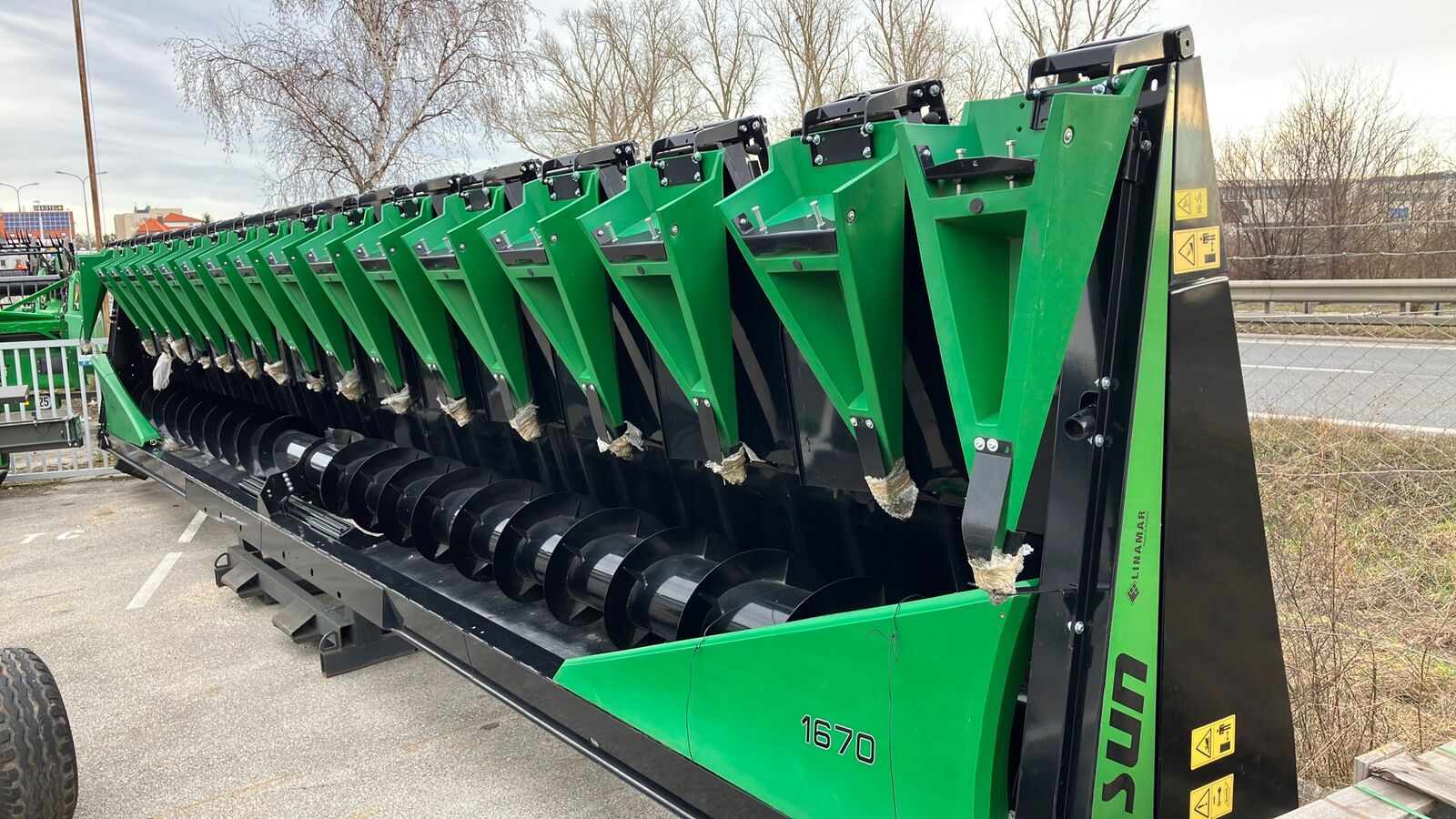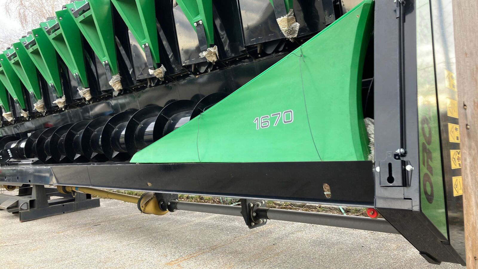 Klassifizierung: Neumaschine; Nettogewicht (kg): 3640; Typ der Anhängerbremse: ohne; Mähvorsatz/Maisgebiss: Ja; Seriennummer/Fahrgestellnummer: 2022019700; Anzahl Reihen: 16; Weitere Maschinenmerkmale: Oros 1670 Sonnenblumen Pflücker Neumaschine.